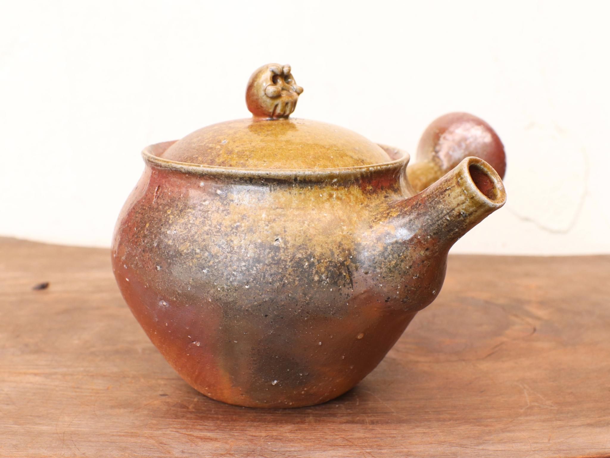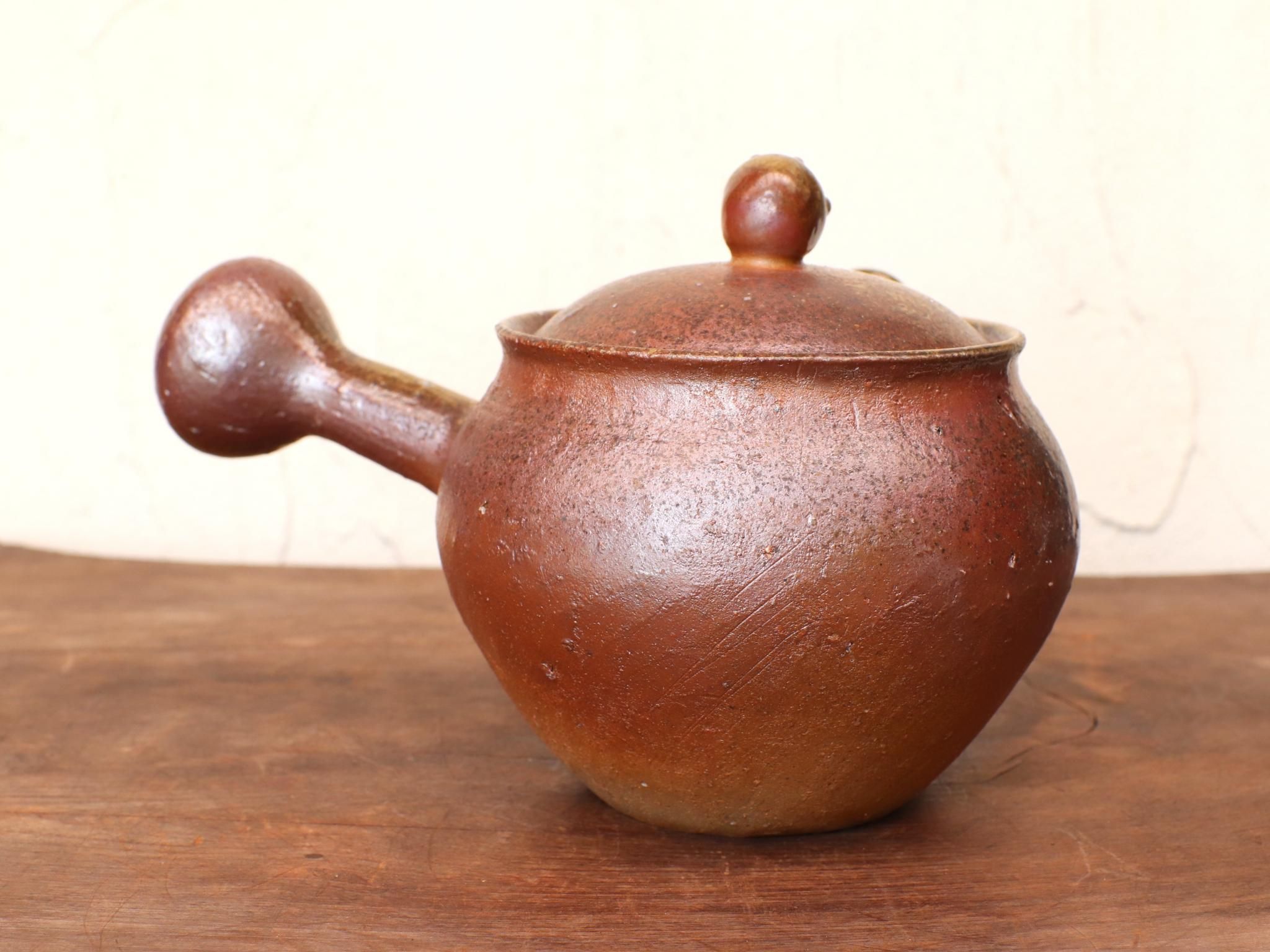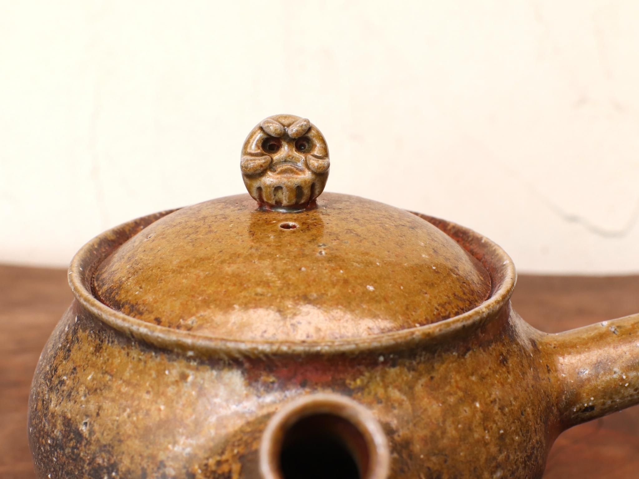 蓋のつまみが達磨になっています。サンンギリの急須で、土ものならではの温かい雰囲気が特徴です。