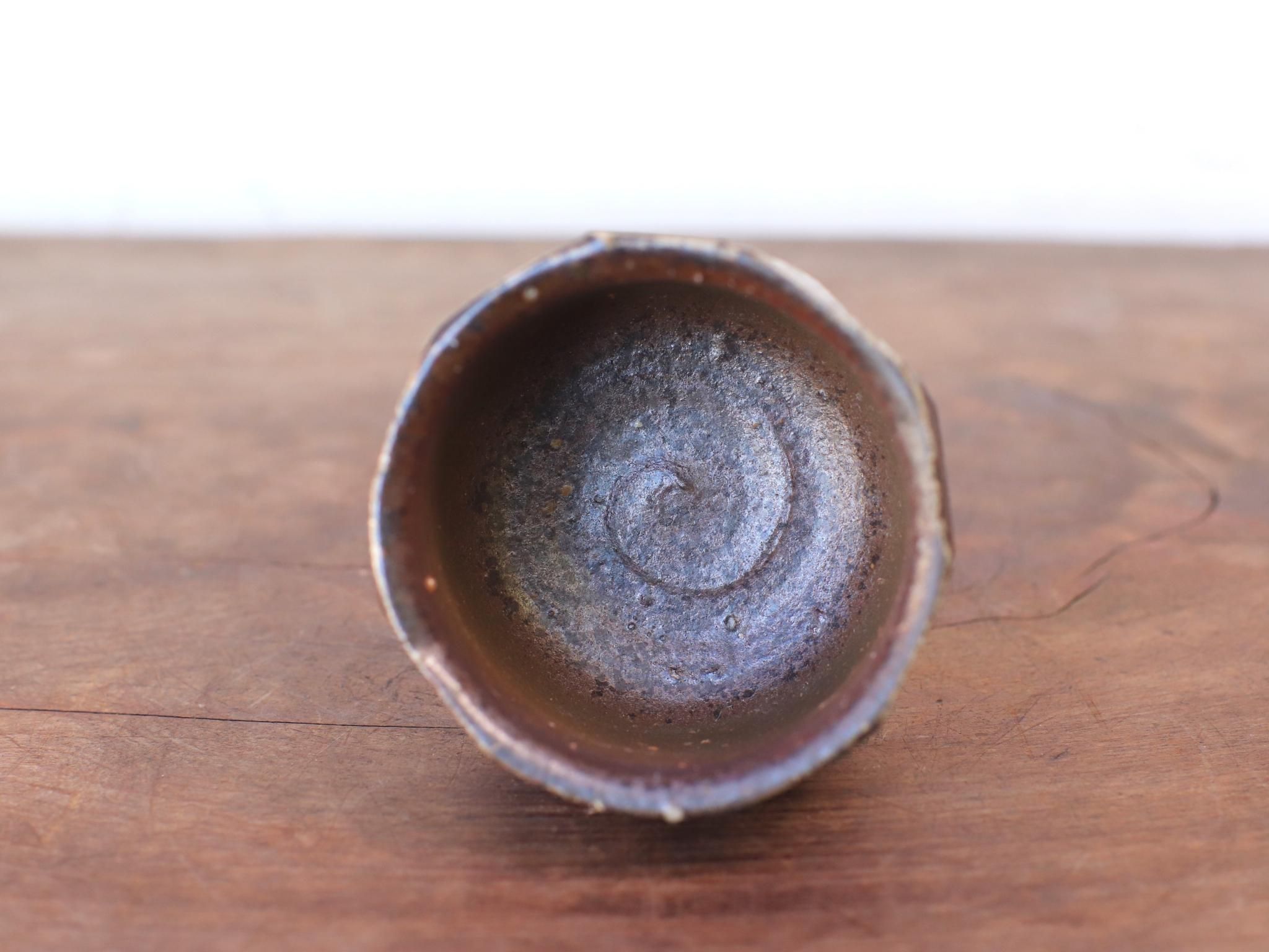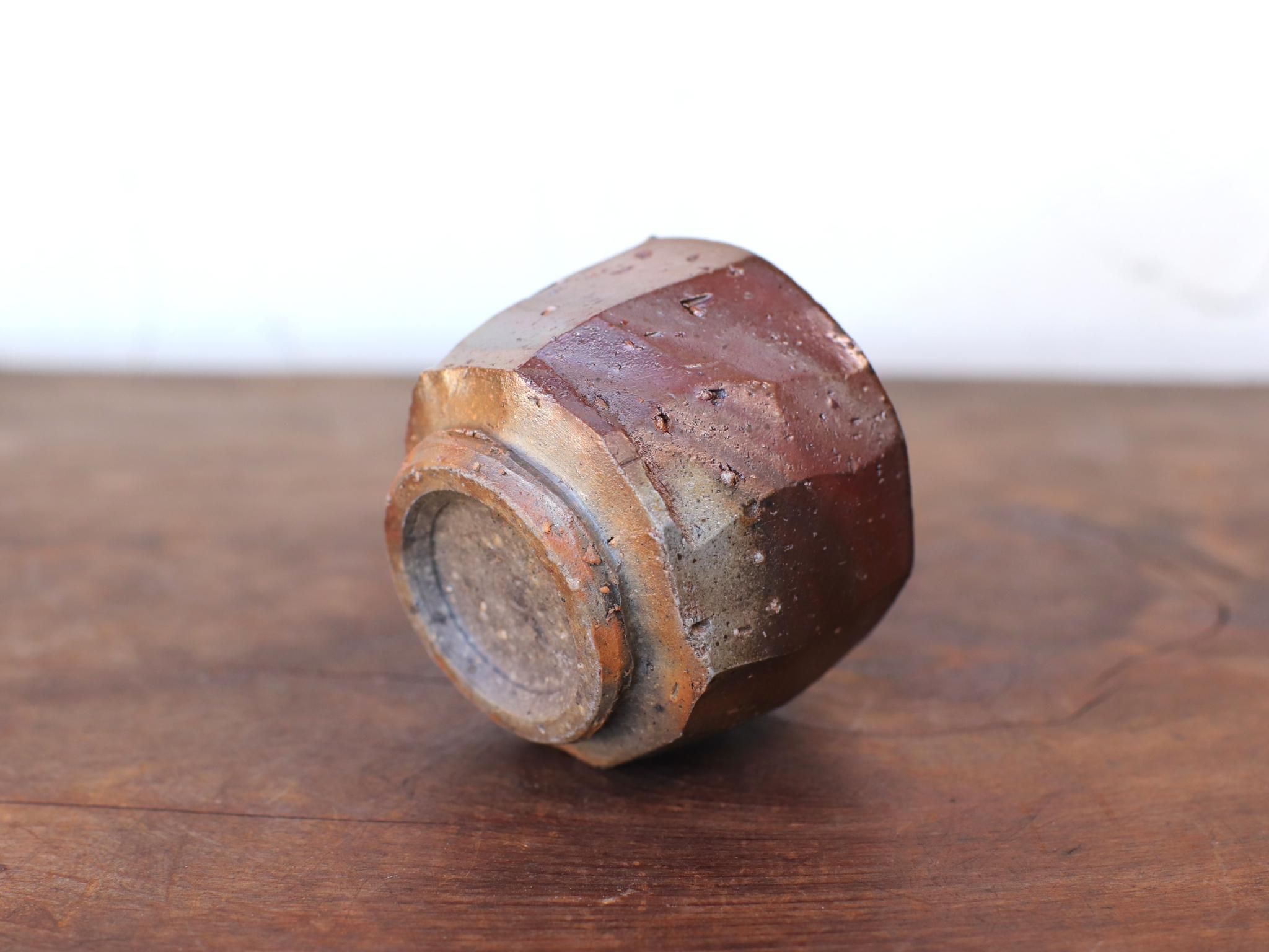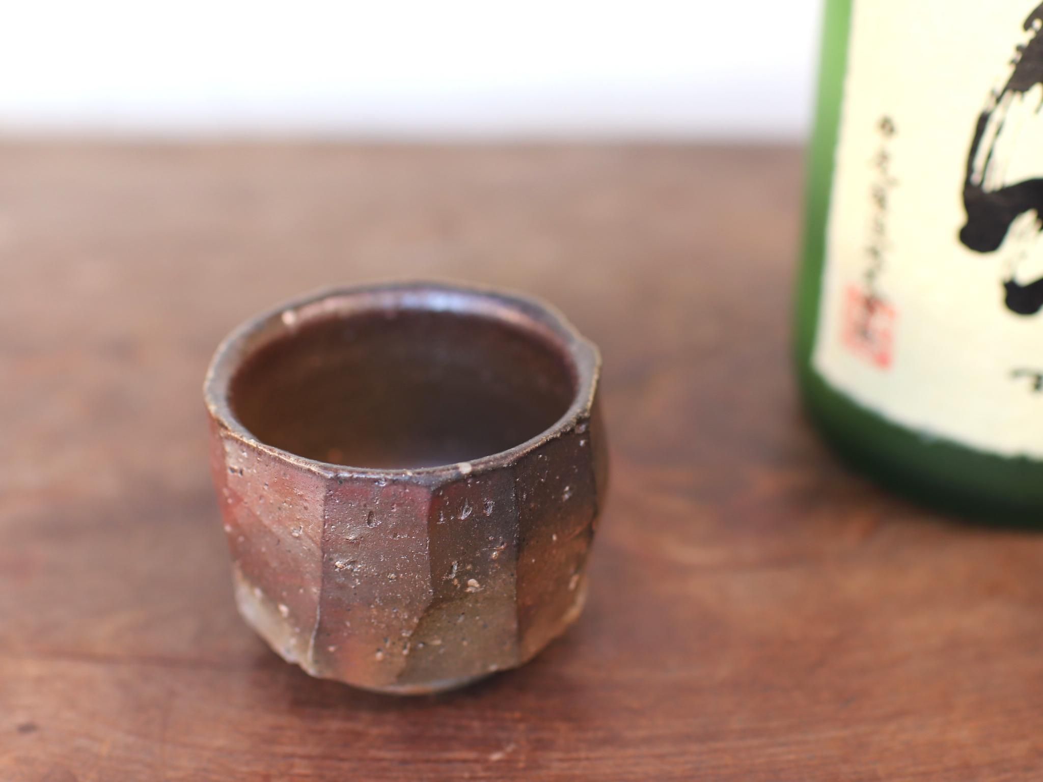 器面をざっくり削り落としたサンギリのぐい呑み。土を焼いただけの素朴な佇まいは日本酒とよく合います。